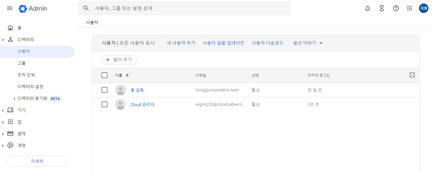 앞으로 사용자를 새로 만들고 삭제하는 등 Cloud ID 프로비저닝과 관련한 설정은 해당 Google Admin 콘솔에서 진행합니다.