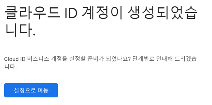 클라우드 ID 계정이 생성되었다는 화면이 나타납니다.
