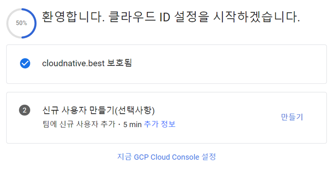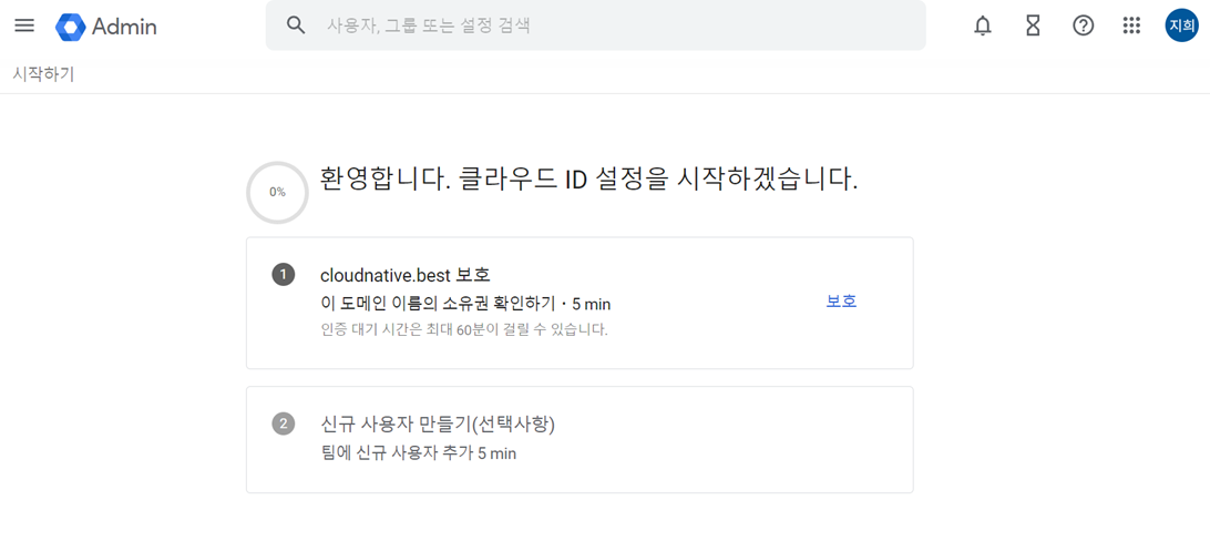 도메인을 얻은 다음 아래 URL에 접속해 본격적으로 Cloud ID를 생성합니다.