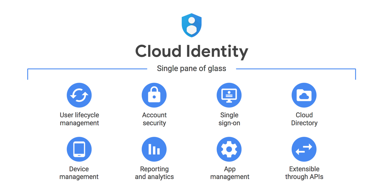 Cloud Identity(줄여서, Cloud ID)는 조직에서 사용자와 그룹을 중앙에서 관리할 수 있도록 제공하는 Identity 서비스입니다. Cloud ID를 사용하면, 사용자가 SSO(Single Sign On)로 쉽게 앱에 접근할 수 있으며, 다단계 인증을 제공받을 수 있습니다. 조직에서는 기업의 데이터를 안전하게 보호하는 정책을 ‘일관되게’ 적용할 수 있고, 리소스 및 사용자에 대한 ‘접근을 제어’할 수 있습니다. 또한 기존에 Microsoft Active Directory를 사용하고 있다면, 디렉터리 동기화가 가능하기 때문에 이를 통한 사용자 인증이 가능해집니다.