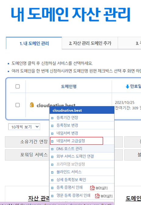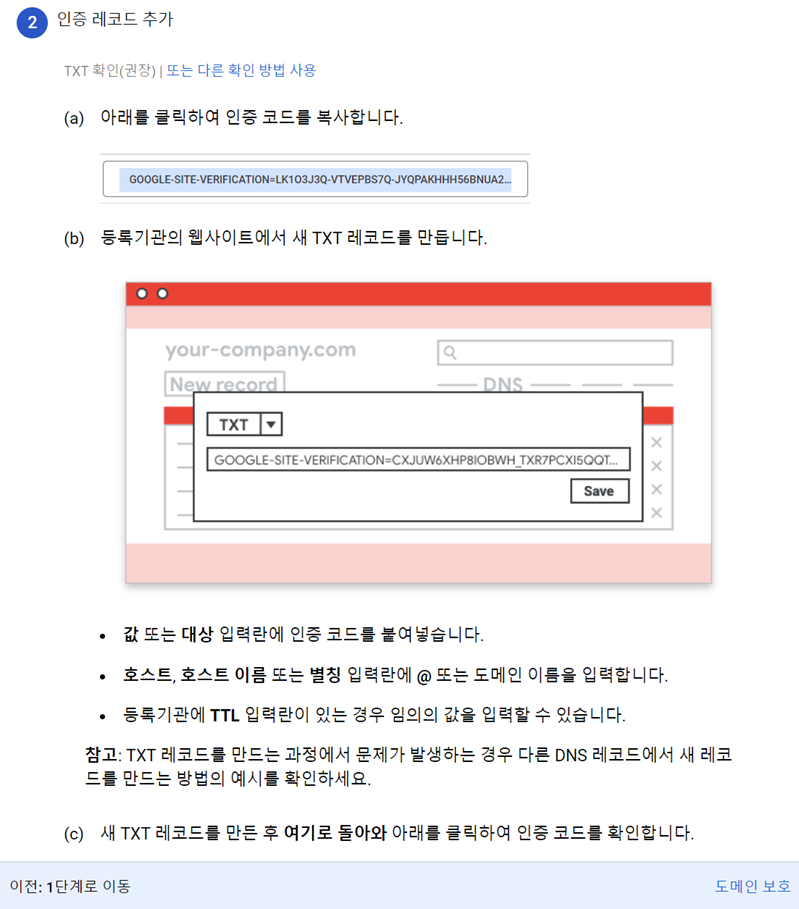 위에서 기입한 도메인 이름이 실제로 내 도메인인지 인증이 필요하다는 안내창을 확인할 수 있습니다.