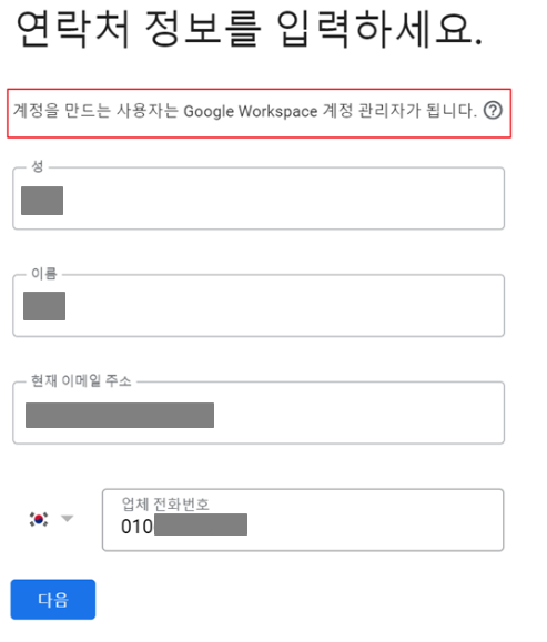 지금 생성하는 사용자는 Cloud ID를 관리하는 ID 관리자 역할을 수행하는 ‘최고 관리자’ 가 됩니다. 이를 고려하여 값을 입력합니다.
